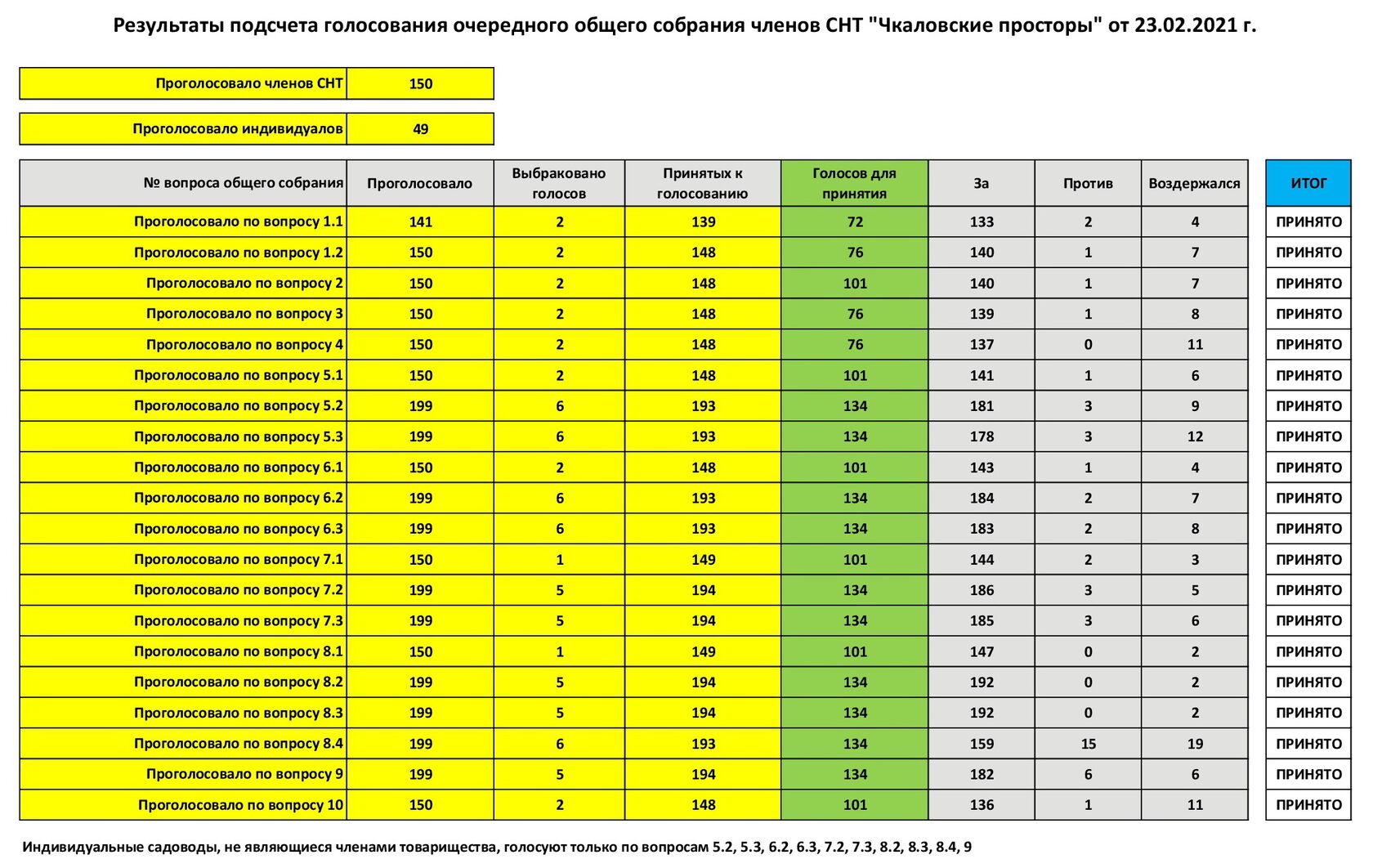 От лица членов правления выражаю признательность всем, кто нашел время и принял участие в принятии столь важных для жизни СНТ вопросов!