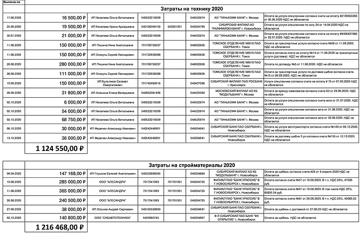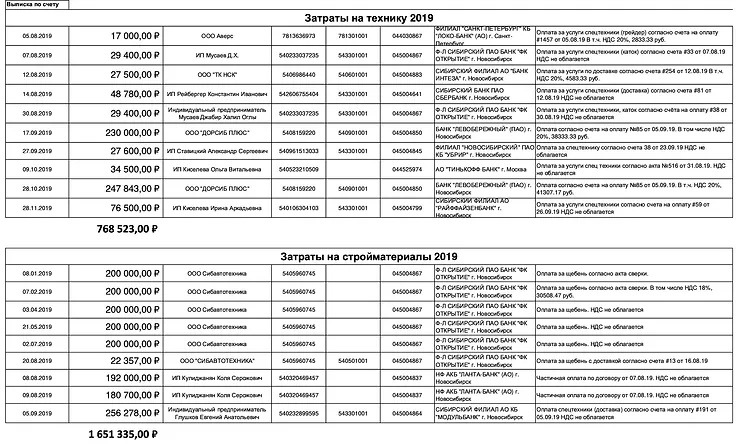 Нарушения, выявленные в 2018 году – это были «цветочки». Настоящие «ягодки» появились в 2019 и 2020 гг. В конце 2020 г. был финализирован отчёт ревизионной комиссии. В этом отчёте детально проработаны все движения по счёту СНТ (каждая операция) за 2018-2020 гг. Выявлена масса нарушений, материалы переданы в органы полиции и прокуратуры. Прошу Вас ознакомится с отчётом ревизионной комиссии 2020 г. и независимой экспертизой стоимости работ по обустройству центральной дороги в 2020 г. для обустройства которой только на аренду техники потратили более миллиона рублей.